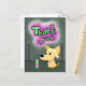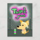 Cachorro bonito pintou as palavras Obrigado na parede atrás da cerca do elo da corrente. Engraçado desenho para expressar sua gratidão.