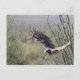 Uma grande coruja Horned voa com uma paisagem do deserto.