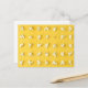 Este design apresenta grãos de pipoca estourados dispostos em uma grade organizada sobre um fundo amarelo. Um grão está apenas metade estourado.