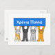 Cartoon cats segurando um cartaz que celebra o 'Dia do Nome Grego'.
