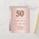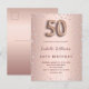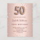 Um convite moderno, na moda e glamouroso para a 50ª festa de aniversário. Um fundo metálico rosa dourado falso com aspecto em forma de diamantes cor-de-rosa. O nome é escrito com um moderno e escuro, rosa dourado, escrito com letra de estilo manuscrito. Personalize e adicione os detalhes da sua festa. O número 50 é escrito com uma fonte de estilo balão, script. Fundo: rosa dourado, design postal. Dica: Se você não quiser que pareça um cartão postal, clique em personalizar, vá para o verso e remova o divisor e o carimbo de posto.