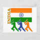 Três mostraram em silhueta jogadores indianos do grilo sob a bandeira indiana com o nome de país India ao longo do lado.