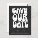 Cartão Postal Groovy 70s Preto Branco Simples Salvar a Data