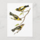 Esta bela impressão de John Audubon retrata um grupo de machos de Grosbeak Noturno empoleirados em um galho nu.
