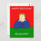 Um homem com aspecto rabugento sentado com os braços dobrados, contra um fundo de cor brilhante. As palavras "Feliz Aniversário, Sr. Grumpy" acompanham a imagem.