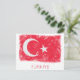 Bandeira turca em estilo grunge com o nome do país na língua local impressa abaixo.