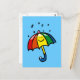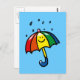 Cartão Postal Guarda-chuva arco-íris e gotas de chuva