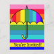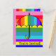 Cartão postal de guarda-chuva de listras de arco-íris fofo. Adicione as informações do evento / festa no verso do cartão. Bom para aniversários, eventos do Dia do Orgulho e mais.