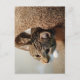 Esta é uma fotografia tomada de meu gato, guarda florestal. É um gato malhado marrom doméstico do cabelo curto, e gosta de jogar o peekaboo em sua torre do gato. Eu agarrei esta imagem quando estava pendurando para baixo através de um furo no nível superior. Este cartão adorável é grande para amantes e postcrossers do gato igualmente.