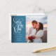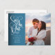 Esta elegante foto de script branco salve o cartão de data com sua foto especial e um script decorativo, salve a data acima de seus nomes, data e local. O inverso tem os detalhes adicionais da data, incluindo o site do casamento, com seu endereço de retorno e espaço para o endereço do destinatário. Projetado por Thisnotme©