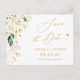 Casamento Floral Verde e Branco Dourado Salve o Cartão-Postal de Data. (1) Para mais personalização, clique no link "personalizar mais" e use nossa ferramenta design para modificar esse modelo. (2) Se precisar de ajuda ou itens correspondentes, entre em contato comigo.