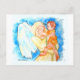Um lindo anjo da guarda segurando uma criança pequena e sorrindo alegremente. Uma bela pintura para nos lembrar do anjo da guarda ao nosso lado
