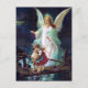 Esta é uma impressão digitalmente aprimorada derivada de uma pintura encantadora de um anjo da guarda observando duas crianças andando sobre uma ponte à noite.