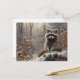 Um guaxinim adorável sentado num tronco, na terra maravilhosa de neve, uma cena serena capturada em uma pintura a óleo em um cartão postal pitoresco. Perfeito para coletar como trabalho de arte ou integrar-se a seus artesanatos, como o abate.
