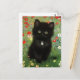 Cartão postal com um gatinho Gustav Klimt! Este gatinho preto veste um colar prateado e se senta num campo de flores vermelhas, azuis, brancas e amarelas. Um presente maravilhoso para amantes de gatos e entusiastas de arte austríacos!
