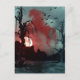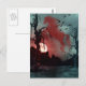 Cavalo vermelho fantasma sobre uma lua de cheio acompanhado por morcegos com um gato preto pendurado em volta do cartão-postal do Dia das Bruxas assustador. Pode ser usado para convites ou apenas uma saudação fantasma