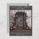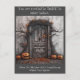 Atrevo-me a entrar pela porta da casa assombrada por diversão assustadora e cellebrações de halloween.