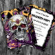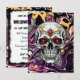 Convite Personalizado para Festa de Halloween. Crânio de açúcar preto e roxo Convites postais de Halloween.