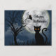 Cartão Postal Halloween do Gráfico da Lua de Gato Negro Bonito