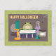 Este cartão de Dia das Bruxas apresenta um sapo, livros de feitiços e material de feitiço.
