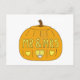 Uma simples ilustração de uma abóbora esculpida com três corações e 'Sr e Sra'. A imagem é definida contra um fundo branco. Um cartão romântico para celebrar um casamento ou aniversário de Halloween.
