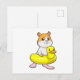 Cartão Postal Hamster na praia com pato como boia inflável