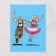 Cartão postal de qualidade com um Design original alemão. Um feliz casal FESTIVAL de CERVEJA em uma roupa tradicional Dirndl e Lederhosen. Ilustração de Frank Ramspott, Munique, Alemanha.