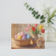 Cartão Postal Happy Easter with Colorful Eggs and Tulips