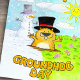 This cute Groundhog Day card features Punxsutawney Phil in a black tophat coming out of the ground. On its left there is a snowman and it's snowing. On its right the sky is blue, the sun is shining and the flowers are blooming like in Spring. On the card is written "Wishing you a happy Groundhog Day".