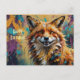 Greetings from A happy smiling fox colorful paint splatter art Happy Birthday Postcard