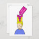 Uma senhora loira cabeleira com o cabelo estirado como uma grande caixa de presentes com um arco rosa ao seu redor.