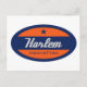 Design de sinalização oval com os bairros de Nova Iorque. Cor oficial laranja e azul da NYC. Bairro de Harlem em Manhattan.