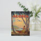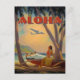 Esta é uma impressão digitalmente aprimorada de uma pintura antiga de uma menina havaiana nativa sob palmeiras tropicais e olhando para cima para um avião antigo. Um pôr do sol no oceano está ao fundo. Você pode personalizar o texto neste modelo.