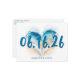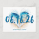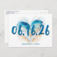 Todo o texto é personalizável neste design. Crie sua onda cardíaca em estilo aquoso em um cartão postal de praia para o seu casamento, salve as datas. Cor azul e marinho com uma dica de areia bege.