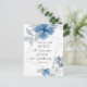 Cartão-postal de escritura inspiracional retrata um simples design floral de aquarela com um quadro duplo moderno adornado com flores e folhas azuis e cinzas. Ele apresenta Bíblia Verso Hebraico 13:5, ... Deus disse, "Nunca te deixarei, nunca te abandonarei."