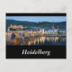 Este cartão postal apresenta uma fotografia panorâmica do Alte Brucke, Castle e River Neckar em Heidelberg, Baden-Württemberg, Alemanha, tirada à noite.