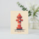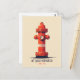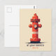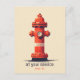 Este cartão postal de cor clara apresenta uma ilustração de hidrante de fogo cor de laranja-branca e um lema personalizável. O texto padrão "ao seu serviço" oferece uma maneira humorística de dizer a seu amigo/família que você está lá para eles com uma assinatura personalizável "desde XXXX".