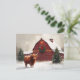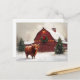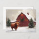 Cartão Postal Highland Cow Red Barn Wreath de Natal