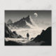 Cartão Postal Hiker Solitário Negro e Branco nas Montanhas do De