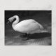 Foto em preto e branco de um Swan Mute cantando em um parque.