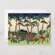 Uma pintura do século 18 de detalhes do excelente. Monte Fuji ao fundo como se flutuasse em nuvens. Árvores e paredes com mulheres carregadas sobre uma cama real com varas de madeira. Dois servos a carregar como ela é seguida por um servo em cavalo. Belas artes por Kitsushika Hokusai