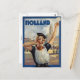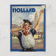 Viagens vintage de poster para a Holanda, mostrando uma garota de fantasia nacional tradicional.