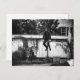 Este postal mostra uma fotografia vitoriana da era vitoriana de um bem vestido cavalheiro vitoriano saltando em seu quintal.