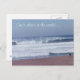 Uma figura solitária está de pé na beira das ondas no canto inferior direito. Grandes ondas do Oceano Pacífico estão quebrando na praia. O horizonte está vazio. O texto diz "O lugar de alguém no mundo..." (pode ser personalizado/alterado).