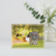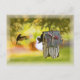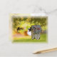 Este cartão mostra uma foto colorida de uma casa que está prestes a pousar na casa de pássaros.