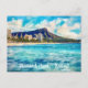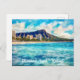 A praia de Waikiki, em Honolulu, no Havaí, é conhecida pela sua bela areia branca, águas claras e azuis, e pelas incríveis visões da Cabeça de Diamante. Este cartão postal de arte havaiana faz parte de uma série de cartões postais criados no estilo de arte do posto-impressionismo e é inspirado por diferentes locais ao redor do mundo.