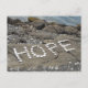 Uma bela mensagem feita de conchas brancas. Ortografa a palavra esperança! ...pelo oceano.