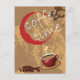 imagem de uma xícara de café, mancha de café e grãos de café. O texto diz: Hora do Café.