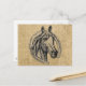 Imagem de safena (dominio público) é uma ilustração com estilo cameo de um cavalo com estrutura de ferradura. Fundo de textura em burlap