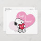 Dia de os namorados de amendoins | Ver o Snoopy a segurar-se num coração vermelho, com corações cor-de-rosa no fundo, que dizia: "abraços e beijos".
